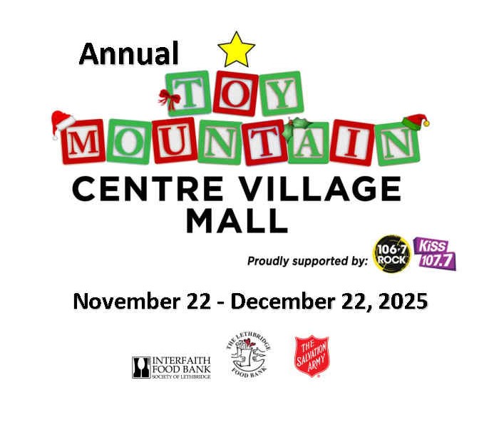 Purchase a new toy and drop it off at Centre Village Mall. The toys will be distributed to less fortunate children by the Salvation Army, Lethbridge Food Bank and the Interfaith Food Bank!